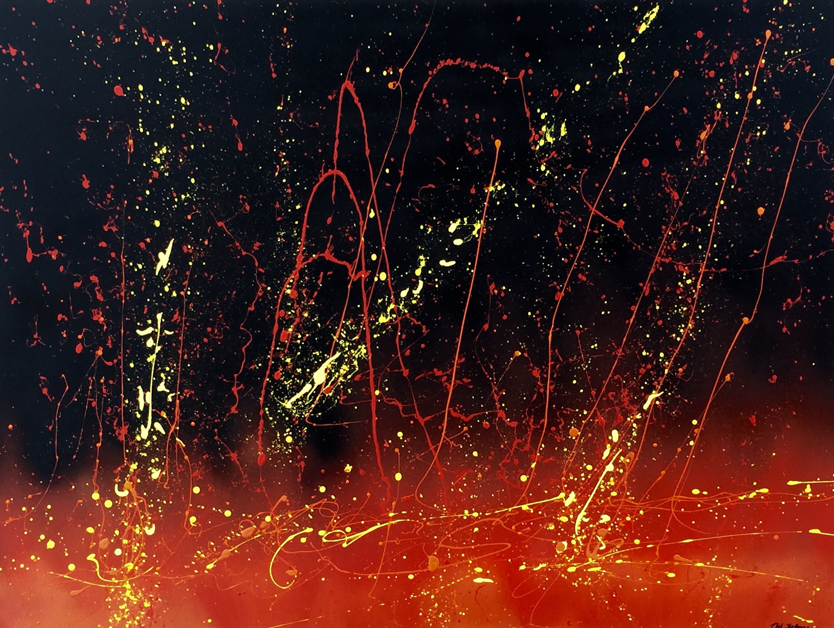 “De Profundis” is Latin for “out of the depths”. It is the opening of the Latin translation of Psalm 130: “Out of the depths I cry unto you…” I am writing a horror novel with hell as major theme. I wanted a painting that somehow caught a bit of the spirit of the novel. I started out by toying with some leftover spray paint and house paint and this is the end result.